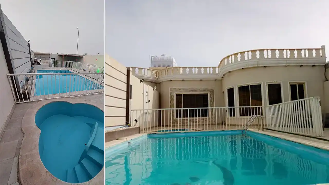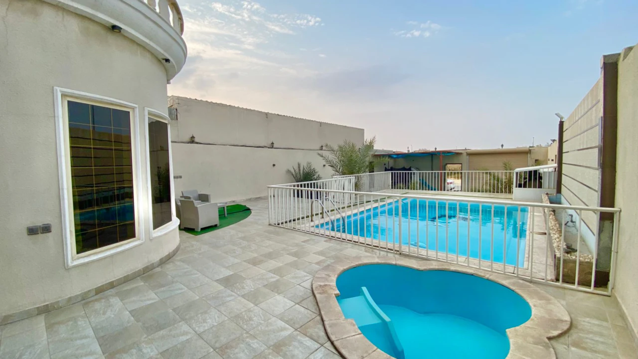 🏖️ شالية فوز Foz (2)استراحة متكاملة بتصميم عصري، تضم مسبحًا خارجيًا بحاجز ومسبحًا للأطفال، وصالة جلوس مريحة بكنب وتلفزيون ذكي، وغرف نوم مجهزة بالكامل، ومطبخ تحضيري متكامل، بالإضافة إلى جلسة خارجية وفناء واسع مع ألعاب للأطفال، ومدخل خاص على الشارع وجراج أوتوماتيكي يتسع لسيارة واحدة. 🚗 |
